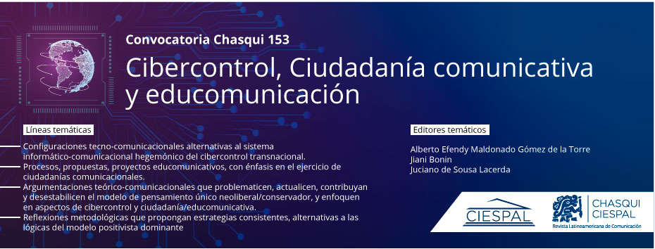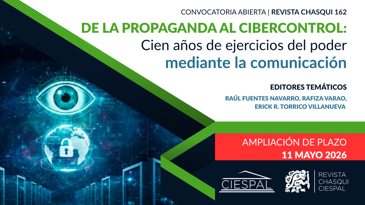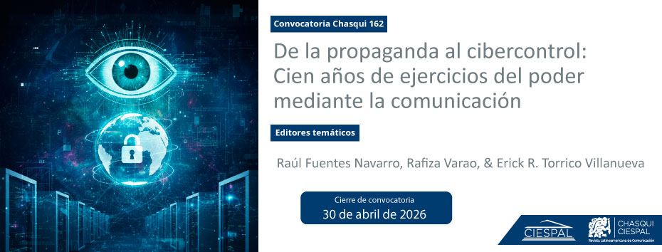 Chasqui 162. De la propaganda al cibercontrol: Cien años de ejercicios del poder mediante la comunicación 2025-12-16 Leer más Leer más acerca de Chasqui 162. De la propaganda al cibercontrol: Cien años de ejercicios del poder mediante la comunicación