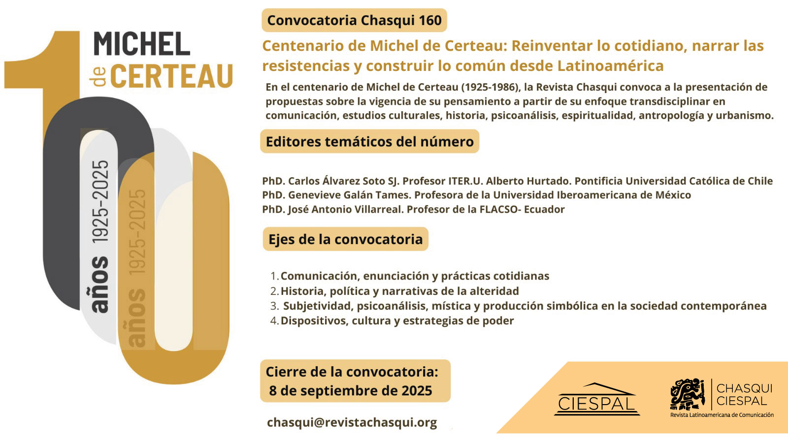 Chasqui 160. Centenario de Michel de Certeau: Reinventar lo cotidiano, narrar las resistencias y construir lo común desde Latinoamérica 2025-05-06 Leer más Leer más acerca de Chasqui 160. Centenario de Michel de Certeau: Reinventar lo cotidiano, narrar las resistencias y construir lo común desde Latinoamérica