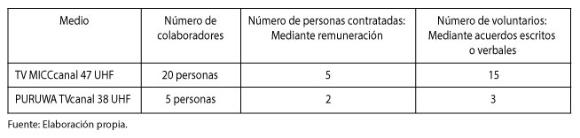 Tabla 2: Personal que forma parte de los canales de televisión comunitarios