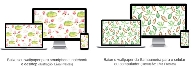 Já a série “As Anciãs do Museu Goeldi”, lançada em julho de 20164, destacou curiosidades sobre a coleção botânica do MPEG. Com foco nas árvores históricas e mais antigas do parque, seis espécies foram divulgadas a partir de reportagens, vídeo-reportagens e fotografias do acervo do museu, além de gifs e papeis de parede (Figura 2) para computadores, smartphones e tablets. A maioria desse conteúdo estava disponível no site “Revitalização do Parque do Museu Goeldi”, mas, em decorrência de uma decisão do Serviço de Tecnologia da Informação (SETIC) do MPEG, o site foi retirado do ar e grande parte do seu conteúdo está inacessível.