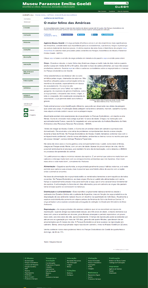 Figura 3 – Ausência de espaço para comentários dentro da reportagem da onça-pintada na série “Aves e Mamíferos”.