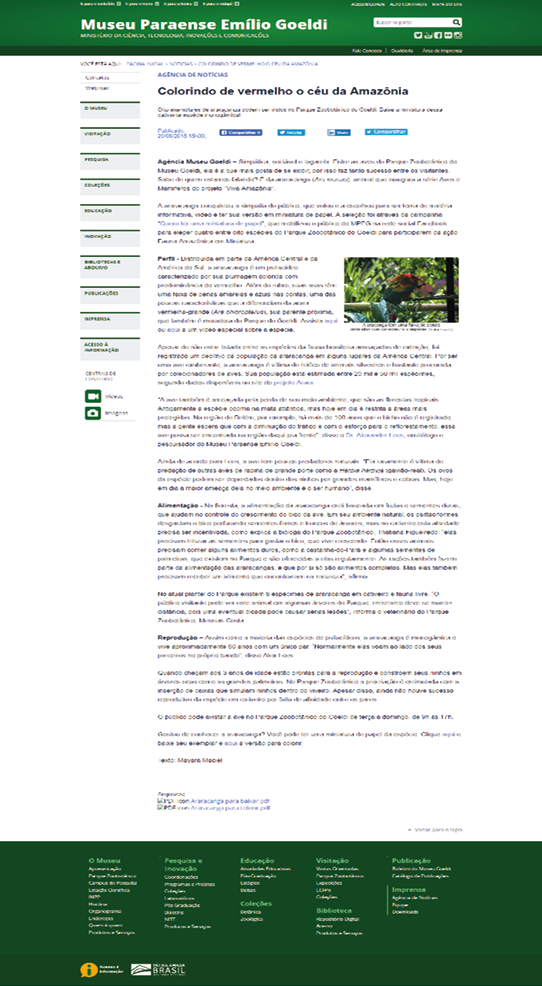 Figura 4 – Exemplo de multimidialidade por justaposição na reportagem especial sobre a Araracanga, na série “Aves e Mamíferos”.