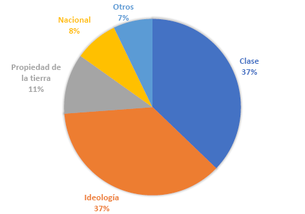 Llama la atención, sin embargo, que, en un país con un sector agrícola tan amplio, las apelaciones a los conflictos originados por la propiedad de la tierra sean del 11% respecto a los aliados, y del 7% en los adversarios.18