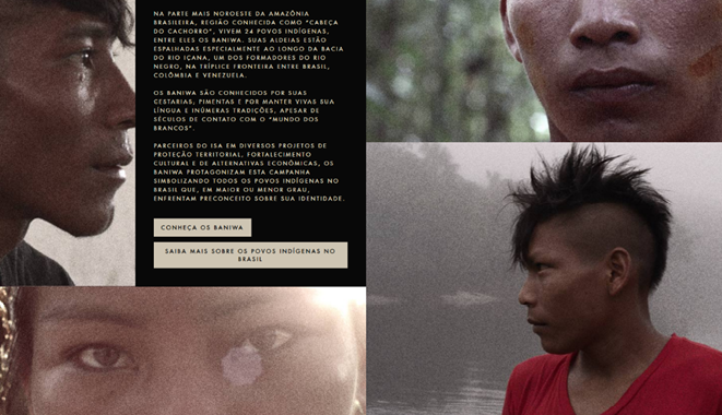 Em menor grau, o ISA revela o midiativismo em campanhas específicas, como a #menospreconceitomaisindio (figura abaixo), de combate ao preconceito indígena, a partir de vídeos e textos feitos com o povo Baniwa, onde há uso de hashtags, incentivo ao compartilhamento, cadastro para mais informações e incentivo à filiação.